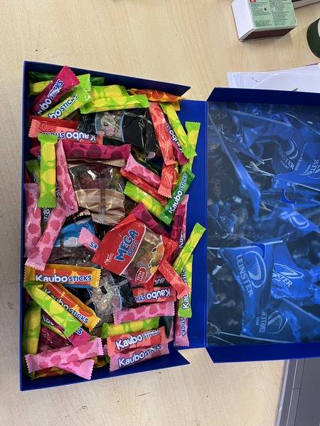 We also had to estimate how many sweets were in a box.  The three boys who had the closest estimates got to share the sweets between them.